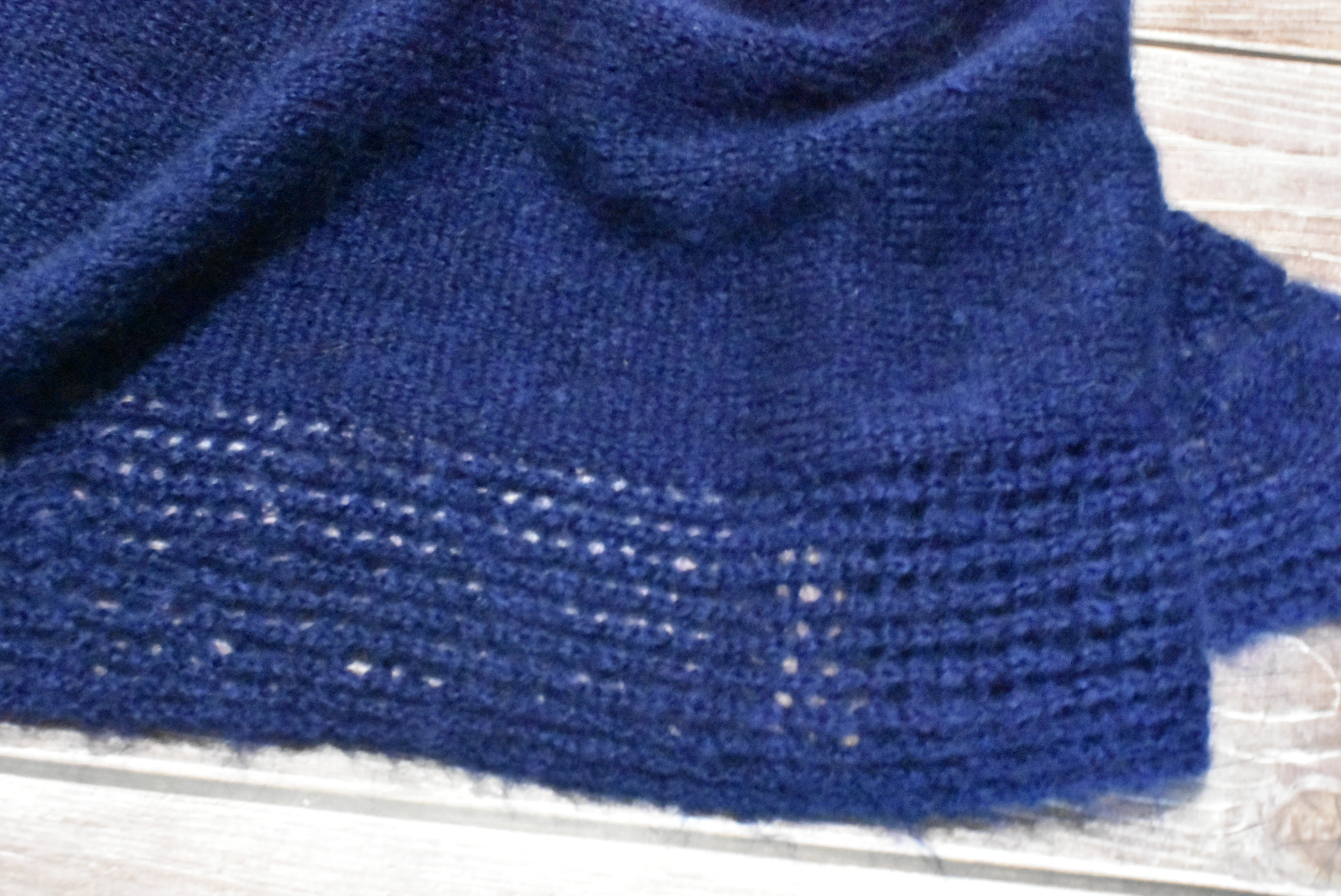 Le geste se doit d’être aérien. Vous ne pouvez pas tirer sur le fil ou le serrer sur vos aiguilles comme vous le feriez avec vos autres fils. Il faut dérouler votre pelote, et voir comme la fibre est filée: un fil conducteur et toute la douceur virevoltant autour. Il faut alors avoir le geste large pour ne pas casser cette douceur. Pensez que c’est un nuage que vous tricotez.