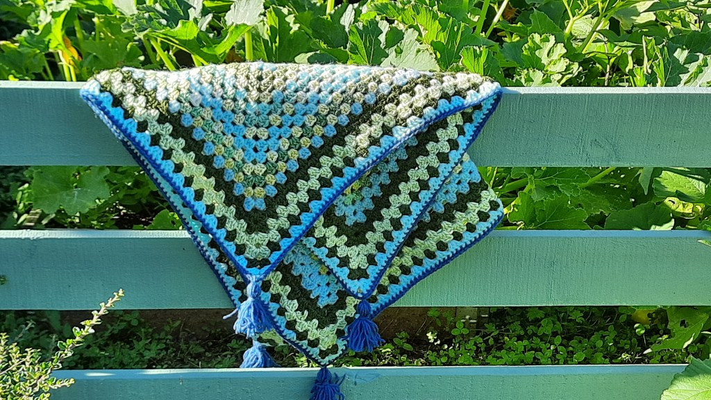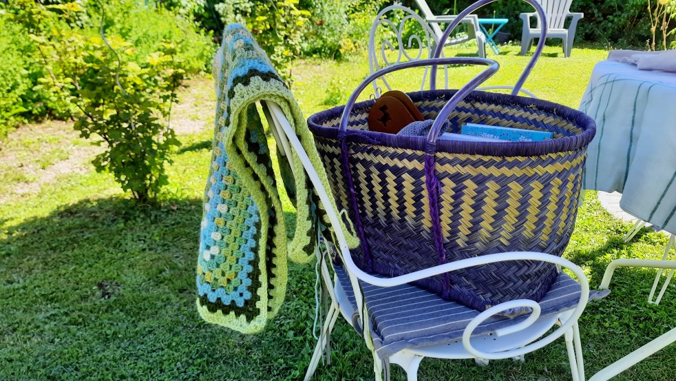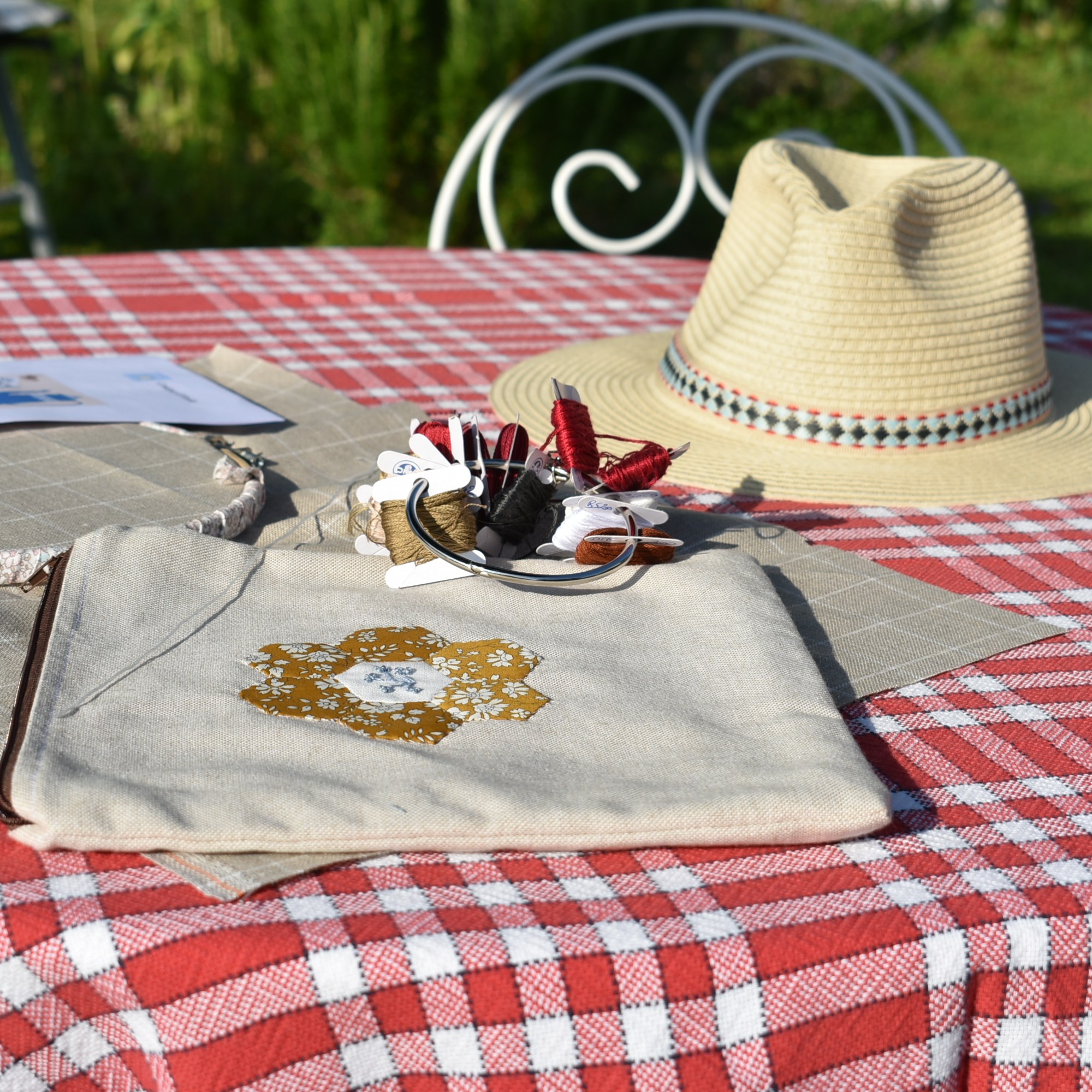 Petit projet qui monte vite, et qui me laisse aussi le loisir de broder au soleil.