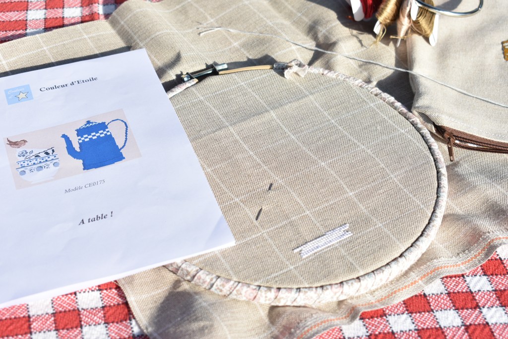 Le blanc éclatant du fil DMC ressort biens sur cette jolie toile achetée chez Jardin Privé… aspect torchon, c’est mon idée.
