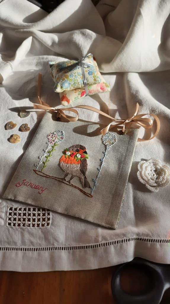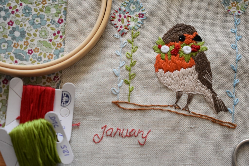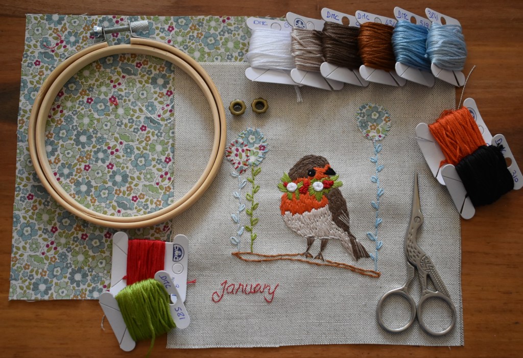 Et si ce projet ,’était que le début d’un projet sur l’année, un petit peu chaque mois et au final se retrouver avec un calendrier intemporel, un livre en tissus avec chaque mois une broderie à découvrir, un tissu assorti…bref un projet pour y laisser une toucher personnelle et qu’on pourra regarder à loisir.