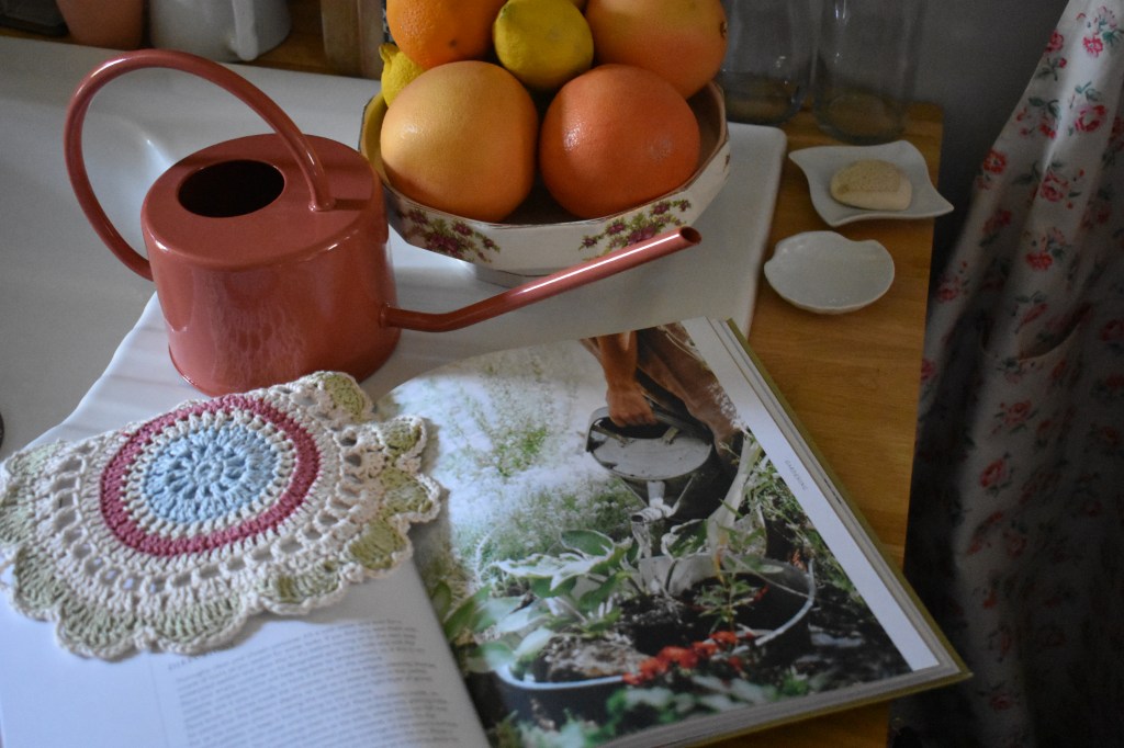 La camomille et les pensées sont dans des bassines en métal que j’avais chiné il n’y a quelques années. Pourvu que ça pousse bien!