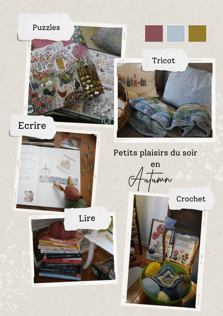 J’ai donc listé mes plaisirs d’automne et j’ai créé un tableau « mood board », sorte d’album de mon humeur pour les soirs d’automne.