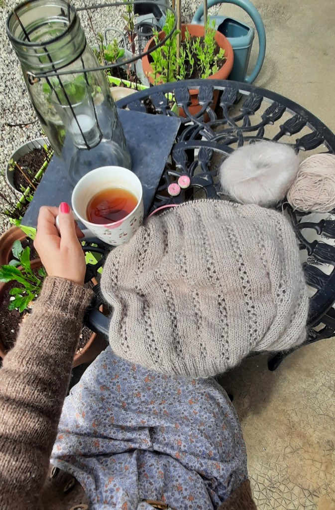 Tasse de thé en main, La sara vest et moi, allons nous installer.