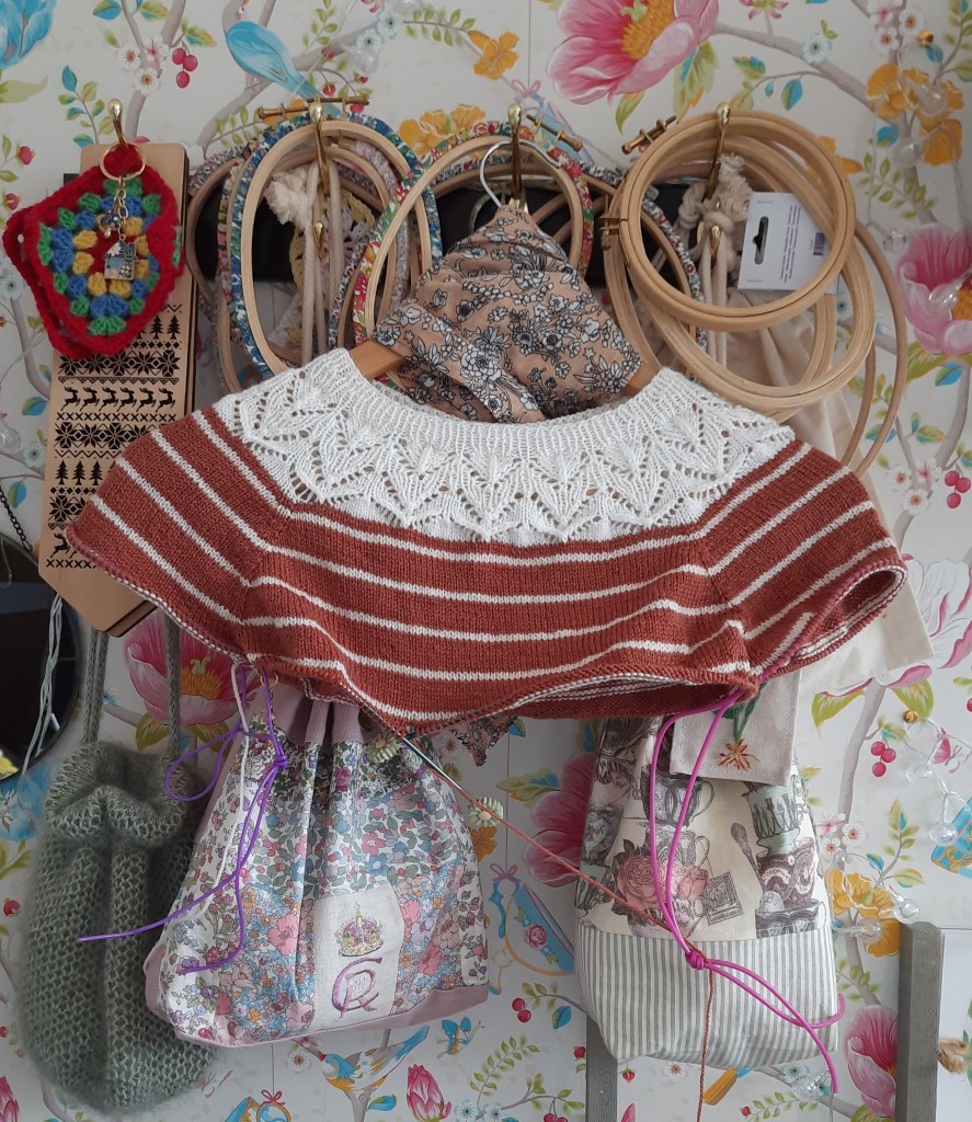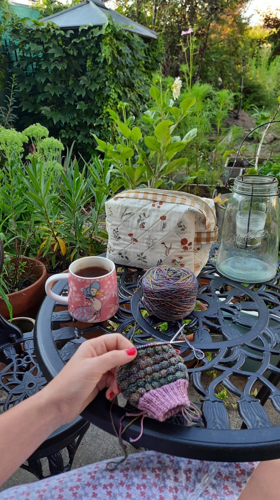 Si donc vous ne me trouvez pas dans le jardin, alors je ne suis jamais très loin entre mes tasses et mes tricots!