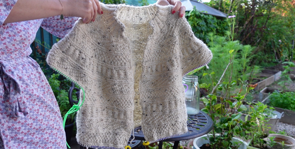 Soit le très beau gilet Dustland de Stephen West en laine Tweed de Sandness garn pour Victor, soit des chaussettes pour Cheyenne ou moi.