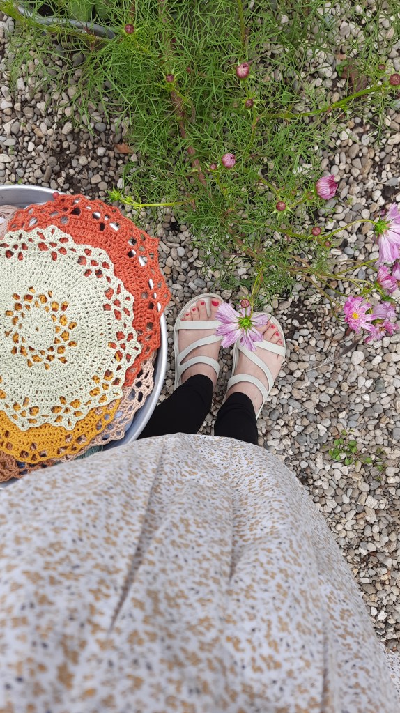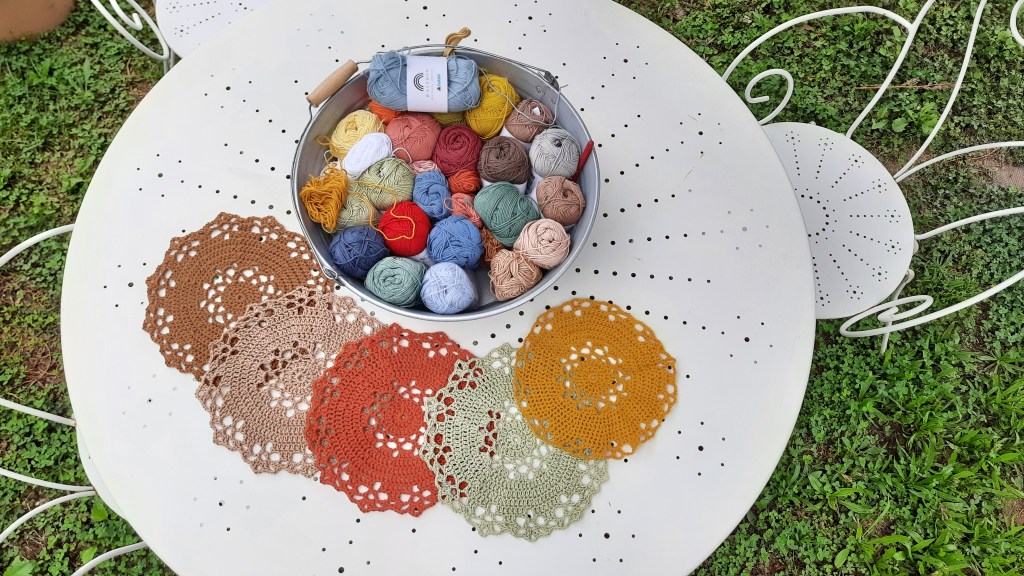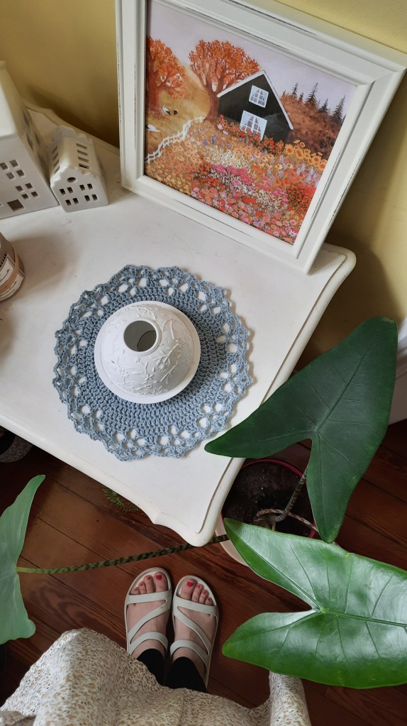 J’ai eu comme une envie de disperser un peu de ces couleurs de fin d’été à la maison avec des napperons en crochet. Cette idée de changer le décor de quelques pièces de vie dans la maison, d’y ajouter un peu de chaleur sans pour autant tout changer, ni se ruiner en décos qui avec le temps perdent leur attrait.