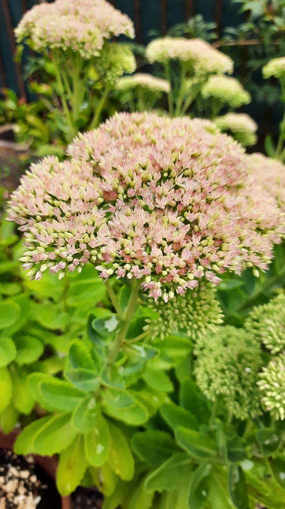 Les Sédums, de plus en plus roses, sont mes repères dans l’attente de l’automne. Ils sont magnifiques! Ils peuvent parfois atteindre des couleurs violettes, des rouges cramoisis et même des fuchsias.