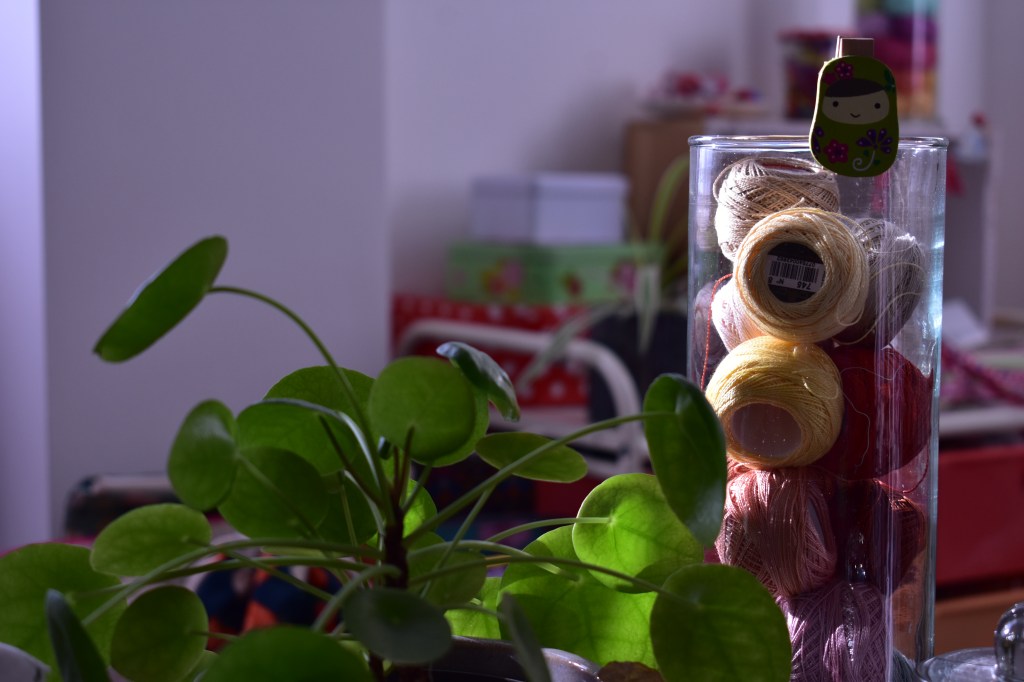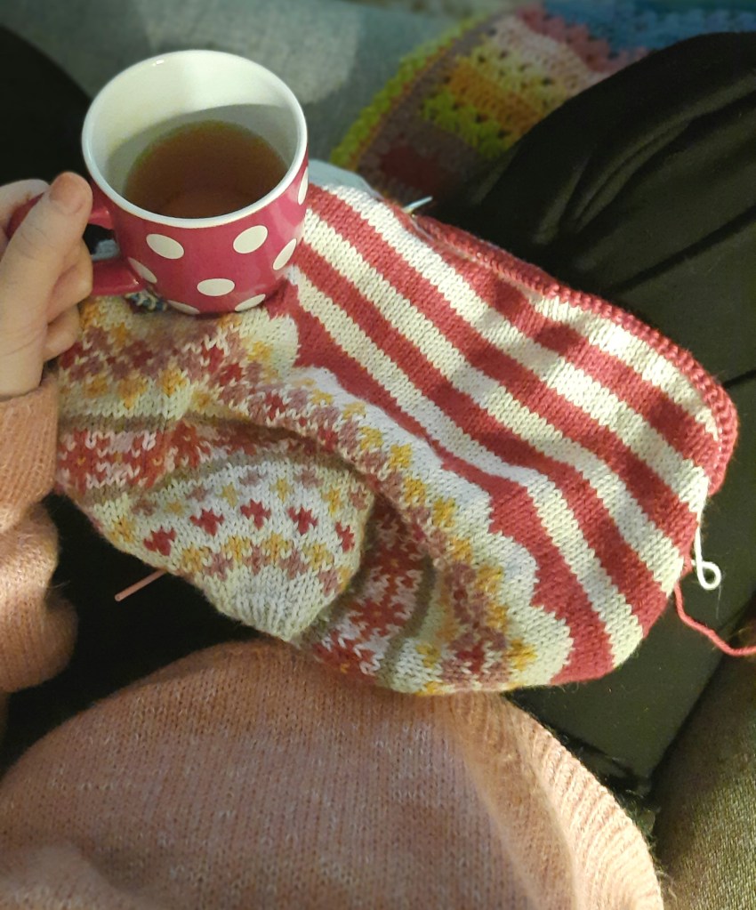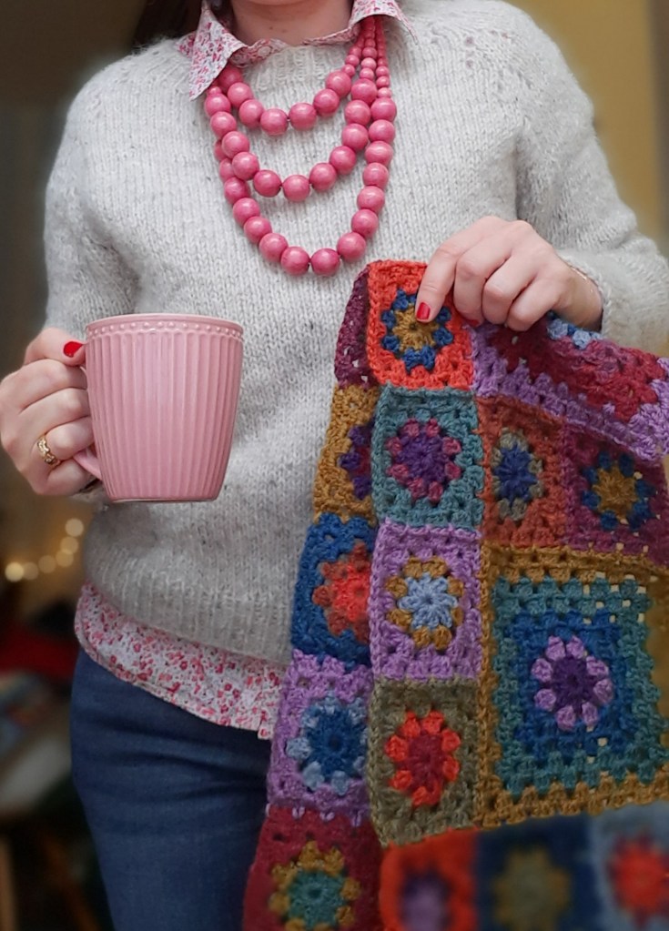 Il y a tous ces projets que j’aime, c’est vrai!! chaussettes, english paper piecing et broderies, mais celui dont je ne me lasse jamais, c’est le projet de couverture. Etalée, enroulée, rangée, pliée, la couverture en laine est toujours un enchantement.
