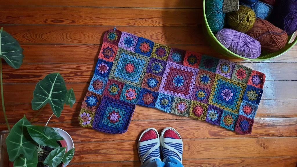 Je suis à la deuxième rangée de grands carrés, encore la troisième à faire et ce sera le tour du contour.