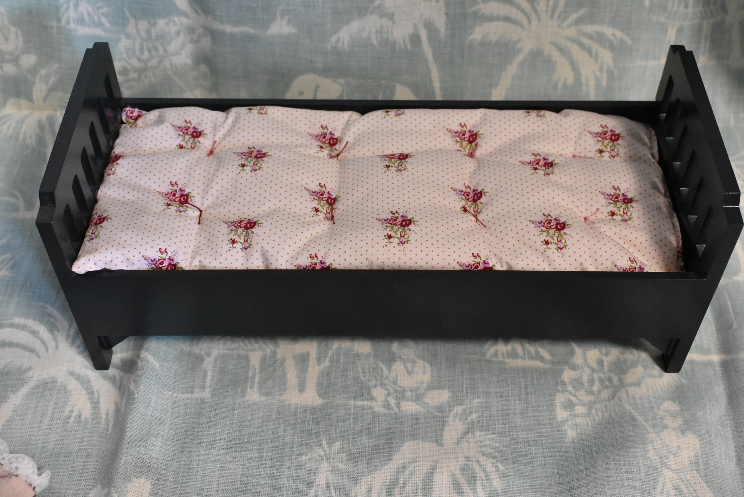 *2 matelas pas trop épais, mais joliment douillets. Je me suis vraiment amusée avec le choix des tissus, car on peut tout se permettre pour une poupée. Ceux que j’ai fait, rentre pile dans la caisse du lit.